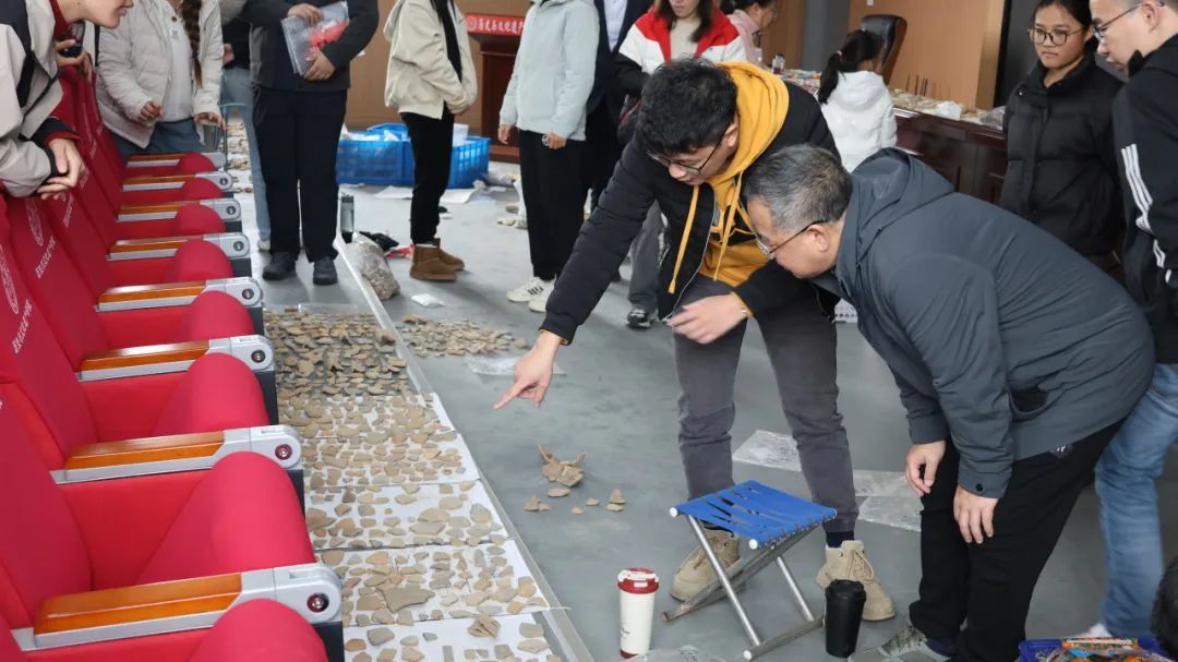8日下午,大家走进考古基地,来到历史与文化遗产学院浦城田野考古实践教学基地,看望慰问在基地学习实践的师生。基地位于仙阳镇殿基村,这里的马道坪遗址规模宏大、堆积丰厚、地层明确,属于新石器时代至青铜时代遗址。2017年起,我院师生在此进行考古发掘,后于2021年建立起田野考古实践基地。在基地中,师生们将发掘的石器和碎陶片进行分类整理,并从大量碎片中还原陶器的本来面貌,未来我院师生将在此继续发掘整理,揭开埋藏地下的远古文明。