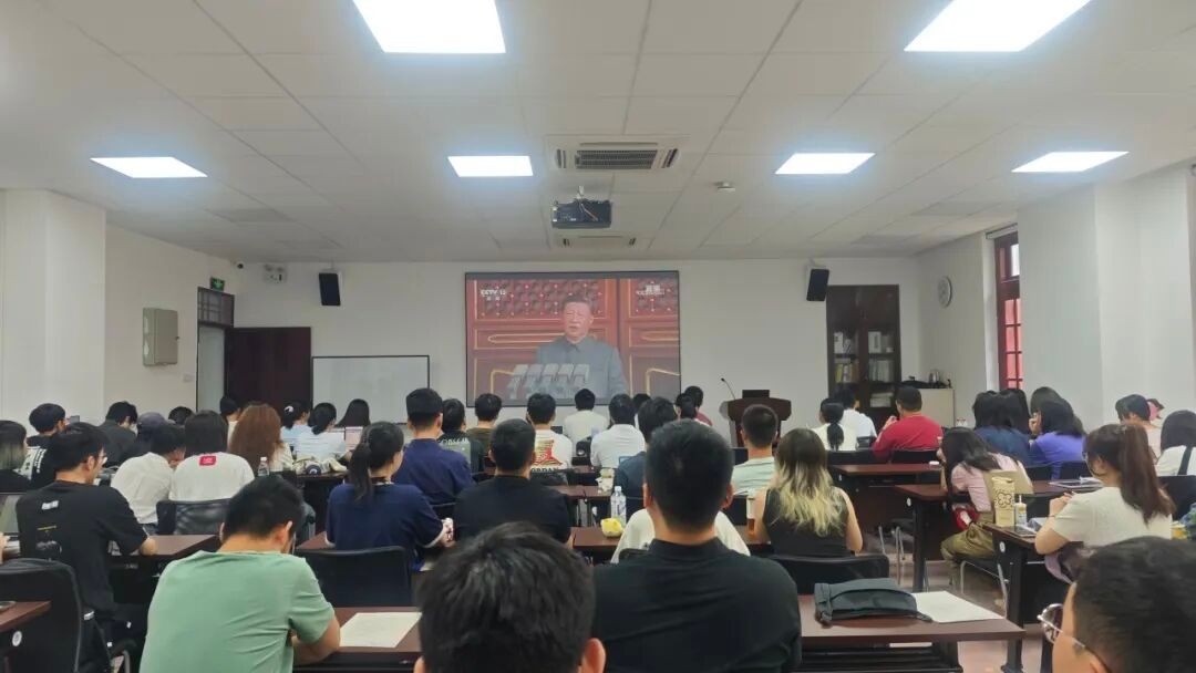 2025年9月3日上午,纪念中国人民抗日战争暨世界反法西斯战争胜利80周年大会在北京天安门广场隆重举行。历史与文化遗产学院党委书记陈锦华、院长张侃、副书记张晗、副院长李莉、副院长张闻捷等党政领导班子成员,各师生党支部党员、2025级本硕博新生怀着激动和崇敬的心情,在南光一320、317、202会议室等会场集中收看直播,共同见证这一盛况。师生们认真聆听习近平总书记的重要讲话,用心记录阅兵式的震撼画面。观看结束后,师生们心潮澎湃、倍感振奋,纷纷发表观看感想。