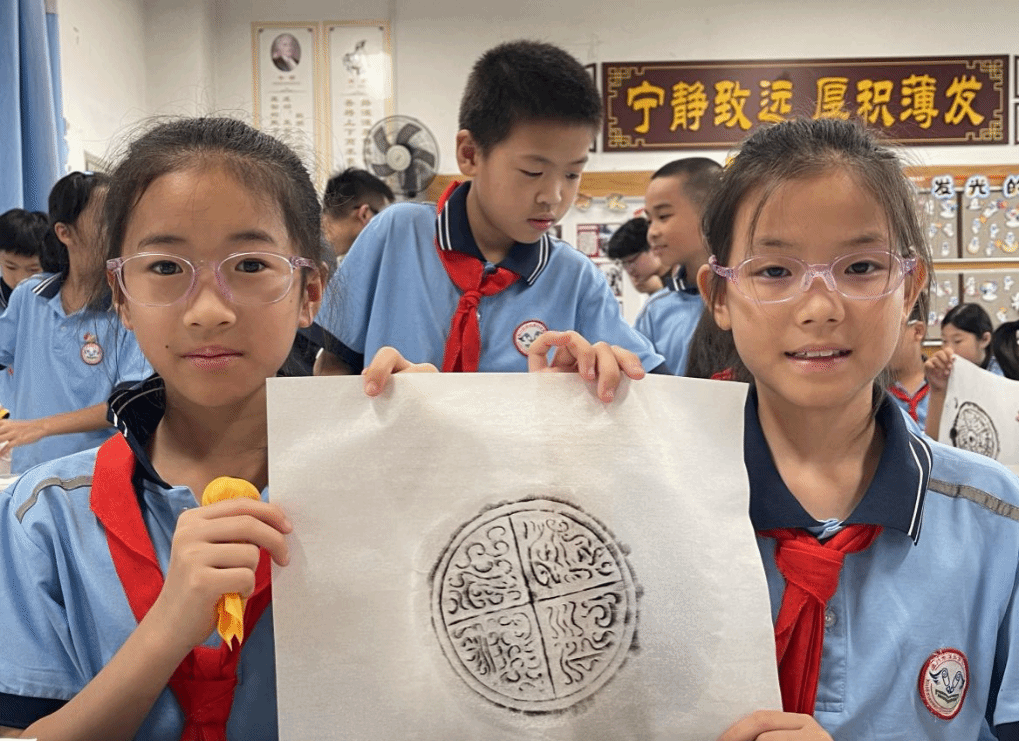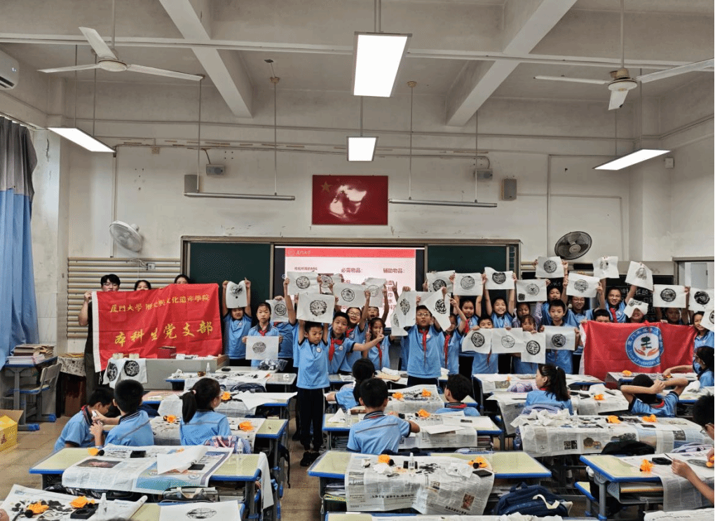 为引导青少年近距离感受中华优秀传统文化的魅力,在实践体验中增强文化认同与民族自豪感,2025年9月24日上午10:00至11:20,厦门大学历史与文化遗产学院本科生党支部携手演武二小五年级一班的同学们,共同开展了一场以“瓦当拓片”为主题的沉浸式文化实践课。此次活动不仅是一次专业知识的传递,更是一场党性教育与文化传承相融合的生动实践。