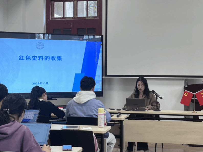 中午,在南光楼122教室,支部邀请档案馆/文博中心馆员刘珊珊、陈世展助理馆员联袂分享,沙龙还邀请囊萤星火青年讲师团成员一同参加。