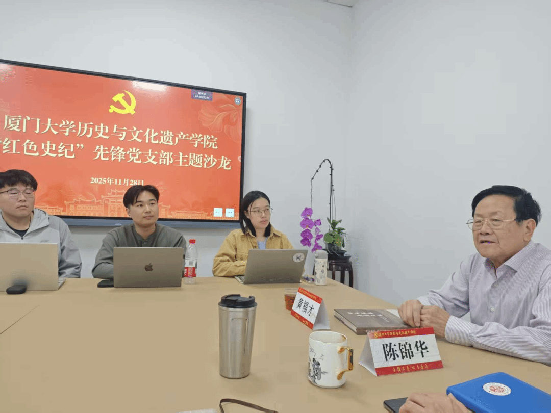 2025年11月28日,历史与文化遗产学院“红色史纪”先锋党支部举办两场主题沙龙,扎实推进做好福建省第一个党组织成立百年党史资料收集工作。学院党委书记陈锦华、团委书记胡雯、先锋支部全体党员参加,党支部副书记张耀文主持。