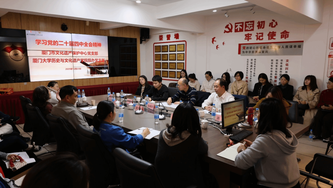 为学习贯彻党的二十届四中全会精神,强化党员理想信念教育,深化校地文化遗产保护协作,12月22日下午,厦门大学历史与文化遗产学院院办党支部与厦门市文化遗产保护中心党支部赴胡里山炮台开展主题党日共建活动。院党委书记陈锦华、副书记张晗等参加了活动。