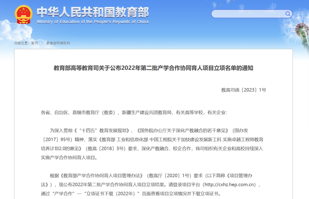产学合作协同育人项目是教育部贯彻落实国家相关文件精神的重要举措,旨在通过政府搭台、企业支持、高校对接、共建共享,深化产教融合,促进教育链、人才链与产业链、创新链有机衔接,以产业和技术发展的最新需求推动高校人才培养改革,培养支撑引领经济社会发展需要的高素质专门人才。产学合作协同育人项目已纳入新一轮普通高等学校本科教育教学审核评估指标体系。