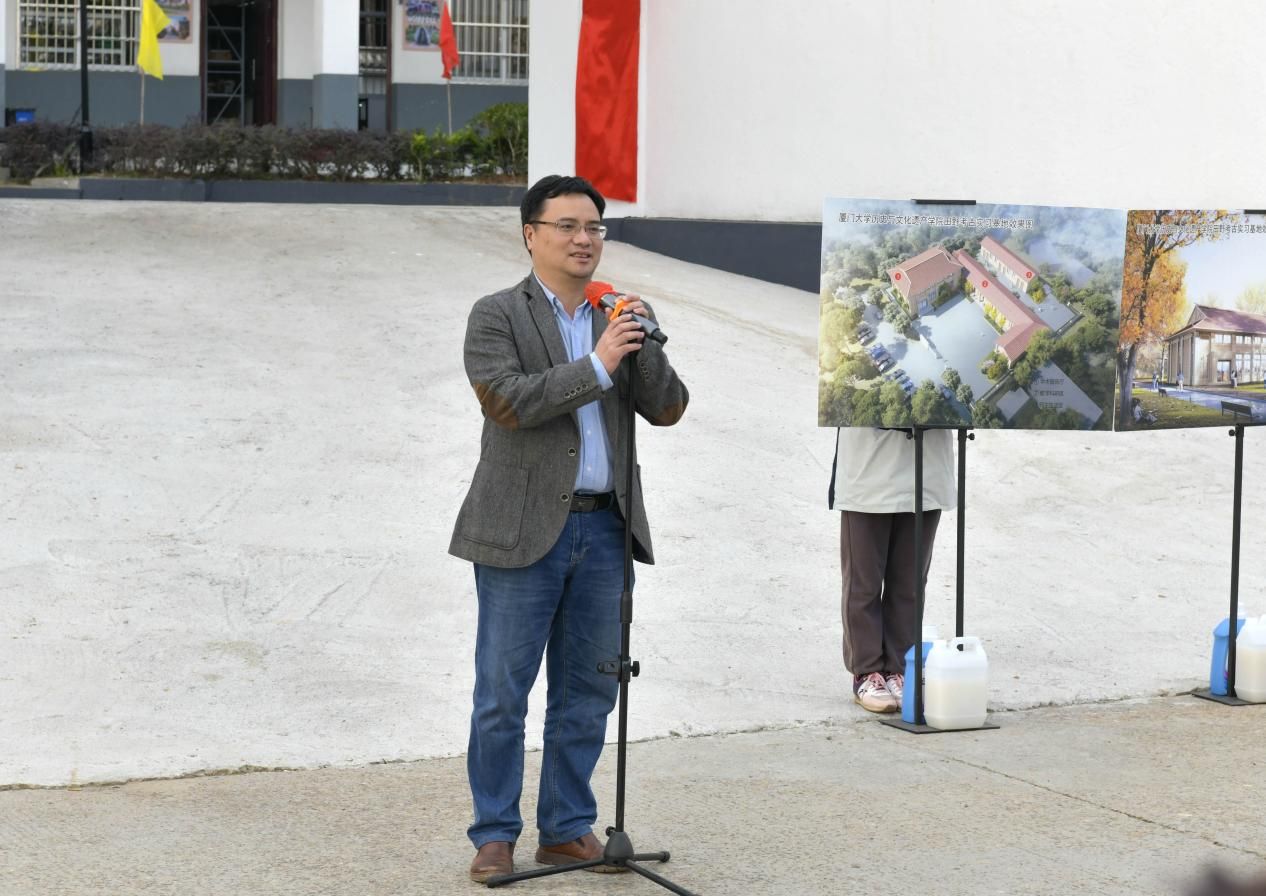 仪式开始,张侃院长进行致辞,首先感谢省市县各级地方政府、殿基村村委及村民对基地建设的大力支持。张侃院长指出,厦门大学历史与文化遗产学院刚刚成立,各项事业方兴未艾,还需要大家一起努力;福建浦城田野考古实践教学基地只是个开始,期待厦大考古今后与浦城、与福建其他地区有更多的合作。