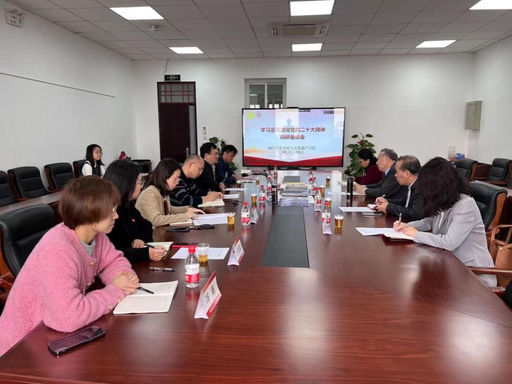 3月9日,历史与文化遗产学院学习宣传贯彻党的二十大精神调研座谈会在南光楼317会议室举行。教育部直属高校党建工作联络员陈子辰,厦门大学基层党建工作联络员林金枝,厦门大学党委党建办主任兼组织部副部长、教师工作部副部长廖志丹,学院党委书记陈锦华,学院党委副书记、院长张侃,学院党委副书记张晗,学院副院长张闻捷等参加座谈,座谈会由陈锦华主持。