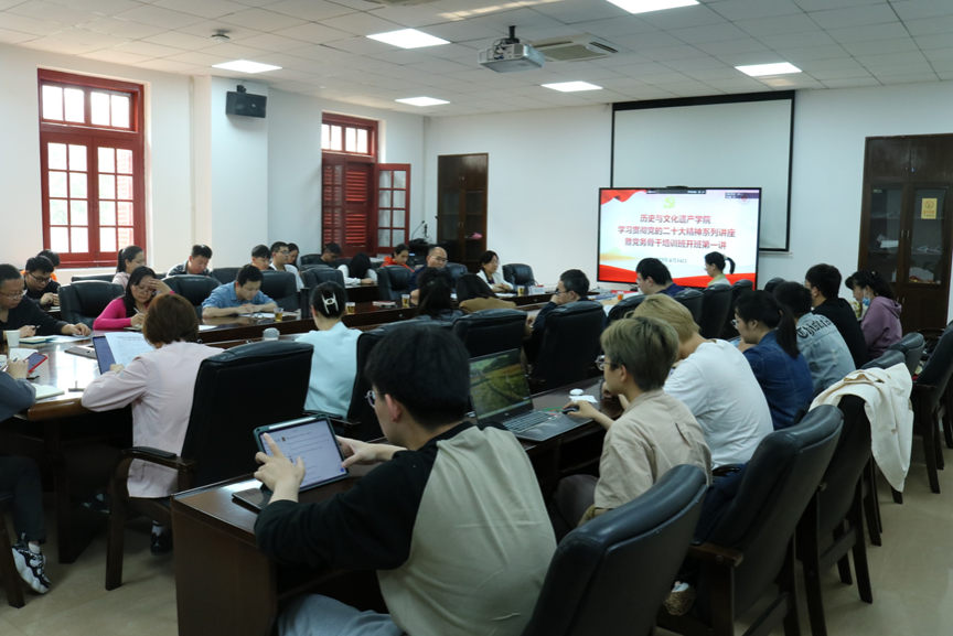 为进一步深入学习贯彻党的二十大精神,把基层党组织建设成为有效实现党的领导的坚强战斗堡垒,历史与文化遗产学院举办党委党校党务骨干培训班。4月14日上午,历史与文化遗产学院学习贯彻党的二十大精神系列讲座暨党务骨干培训班开班第一讲在南光一320会议室举办。校党委党建办主任、组织部副部长、教师工作部副部长廖志丹应邀做《牢固树立党章意识,争做学用党章的模范》专题报告,学院党委书记、副书记,全体师生党支部书记、委员,党务秘书,师生党员代表等参加学习。讲座由学院党委书记陈锦华主持。