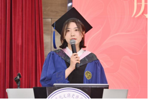 2019级本科生班主任马一舟代表教师发言,她向大家分享了三点人生建议:一是要走正道,在人生道路上保持清醒头脑;二是要耐得住寂寞,在浮躁喧嚣前保持冷静;三是要终身学习,善于独立思考和解决难题。最后,她祝福毕业生们身体健康、物质富足,精神丰盈、生活幸福。