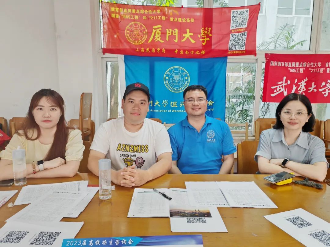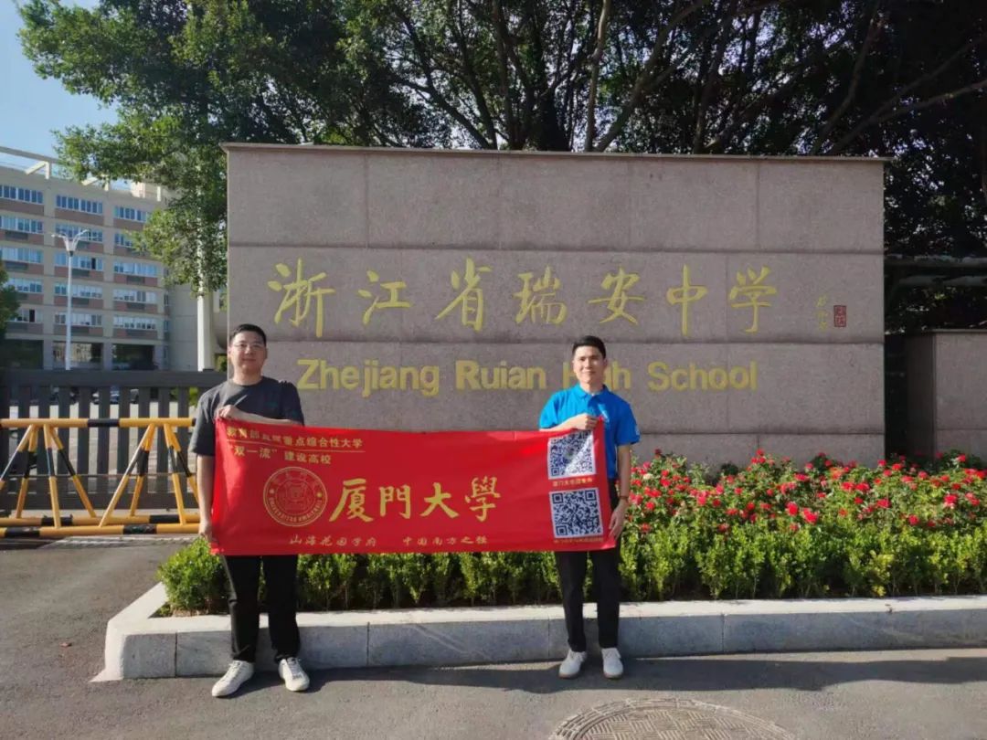 2023年6月26日-27日,厦门大学浙江招生组组长、历史与文化遗产学院院长张侃,历史与文化遗产学院历史系主任水海刚,历史与文化遗产学院副教授林昌丈和2021级历史学强基班学生古欣愉作为厦门大学浙江招生宣传组成员专程赴温开展2023年招生宣讲活动。