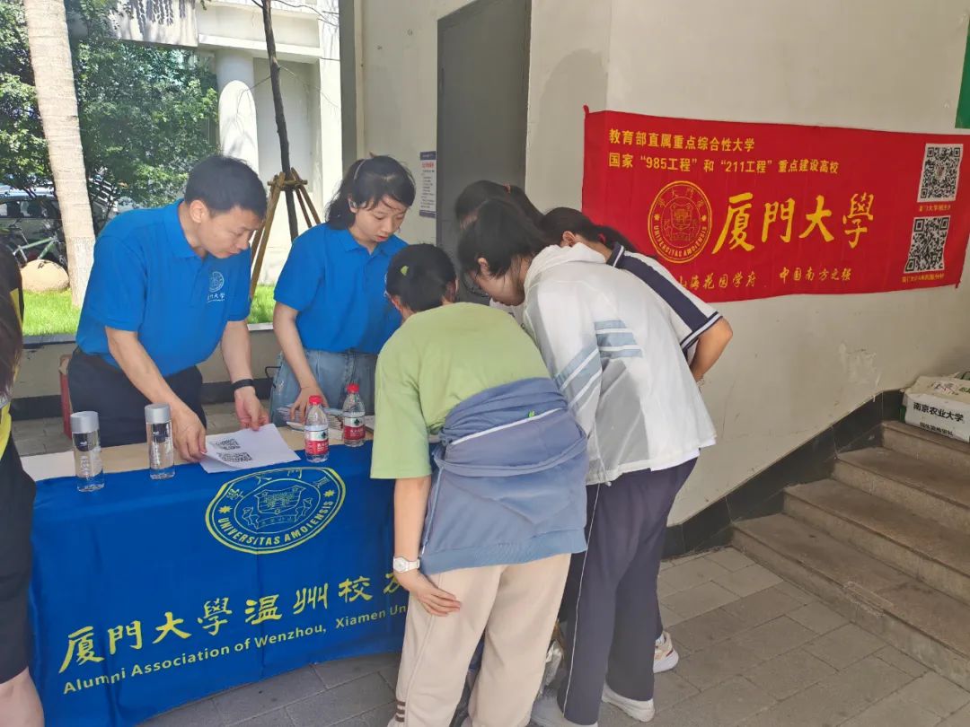 招生宣讲组一行,走进温州中学、瑞安中学、瓯海中学、龙湾中学、温州育英实验学校和乐清中学,面对面为考生提供今年厦大招生政策解读、学科介绍、问题咨询等。厦门大学温州校友会会长虞智勇、副会长曾建飞以及林煜淇、丁但凌、李新铭、曾芷依等校友积极配合母校老师开展本次招生宣讲活动。