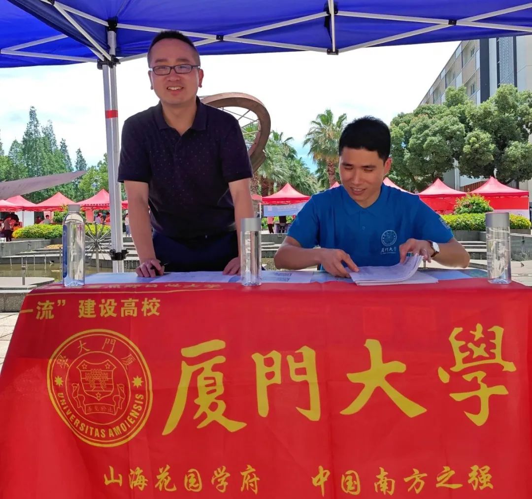 在各个学校现场宣传组成员一一对各个问题进行了耐心的解答,为家长们分发提供报考指南等相关资料,并让家长和考生扫码关注厦大招生公众号,及时掌握一手招生信息。