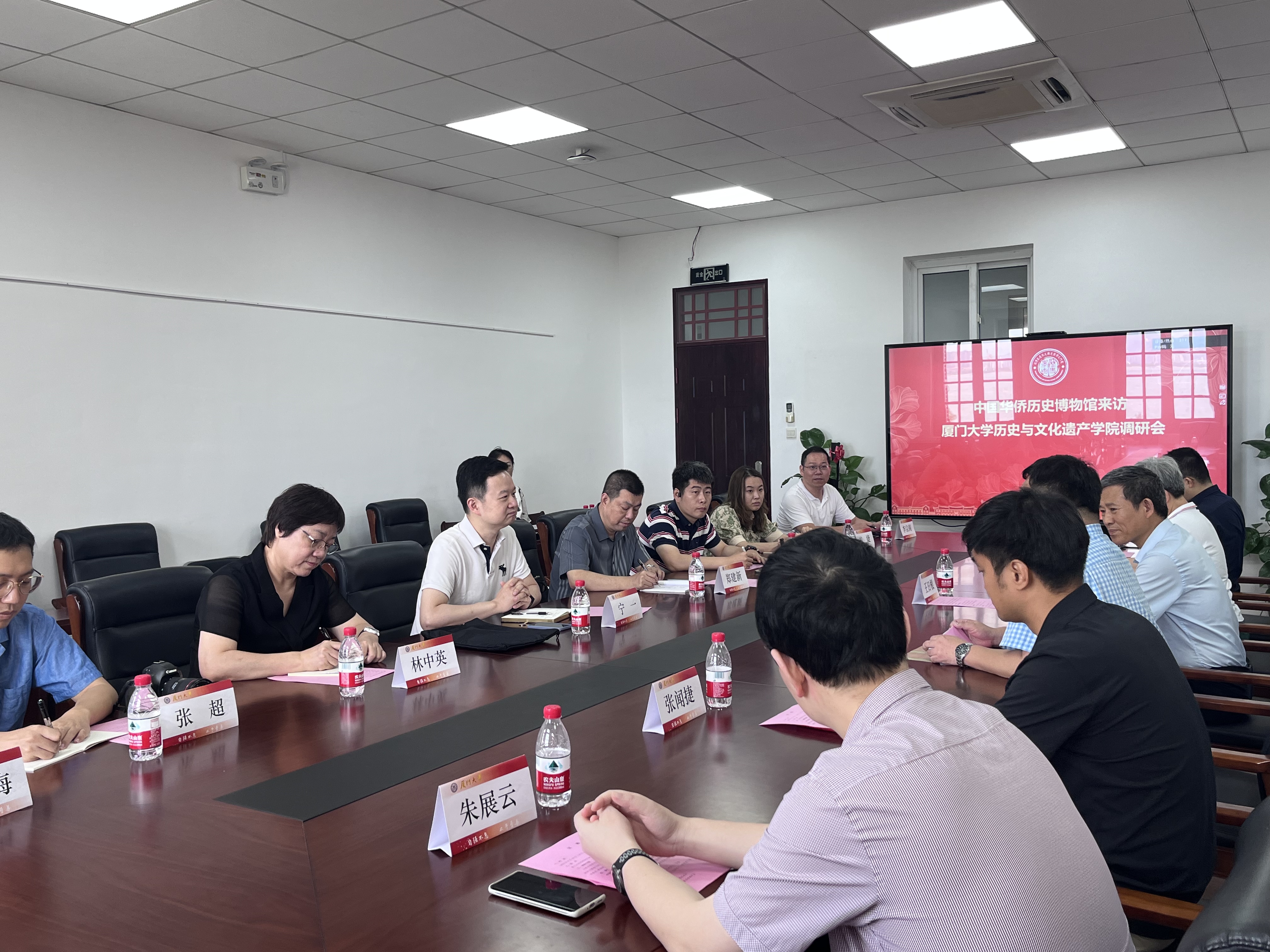 2023年6月30日上午10:30,中国华侨历史博物馆宁一副馆长一行来访我院调研。调研成员包含中国华侨历史博物馆的宁一副馆长(主持工作)、崔婕助理馆员、张子彬助理馆员和张超助理馆员。福建省侨联的郑建新主任和邱成海研究实习员,以及厦门市侨联党组成员林中英和李宗阁四级调研员。厦门大学历史与文化遗产学院的院长张侃、副院长张闻捷、王日根教授、林枫教授、陈博翼副教授和朱展云副教授出席调研座谈会。