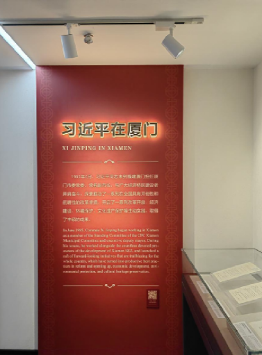 在二楼展厅“习近平在厦门”专栏里,展示了习近平同志在厦门推动的一系列具有开创性和前瞻性的改革措施。习近平同志推动厦门成立了全国第一家中外合资银行——厦门国际银行、指导厦航走出一条符合自身实际的发展路子、主动要求分管三农工作两上军营村推动乡村脱贫、下大力气综合治理生态修复筼筜湖……这一系列措施取得了丰硕的成果,让大家真切感受到习近平同志当年推动厦门经济特区建设的信心与决心,指引厦门朝着经济蓬勃发展、人民安居乐业、对外交流密切的现代化、国际化城市发展。
