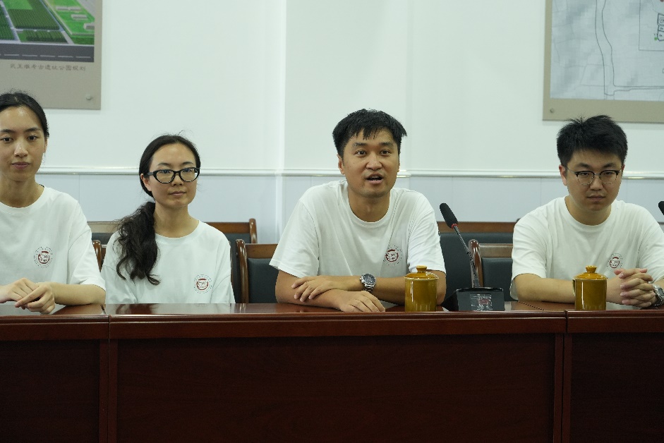 最后,林东伟一行在会议室与同学们座谈交流。“淮南武王墩墓田野考古与楚文化研究”暑期社会实践队同学们逐一汇报了在考古工地的学习以及生活情况,同时表示,在武王墩墓考古工地开展社会实践,有助于巩固课堂知识,找到研究方向,解决学术问题,回应时代关切,增强文化自信,坚定文化遗产保护传承利用的信心和决心。