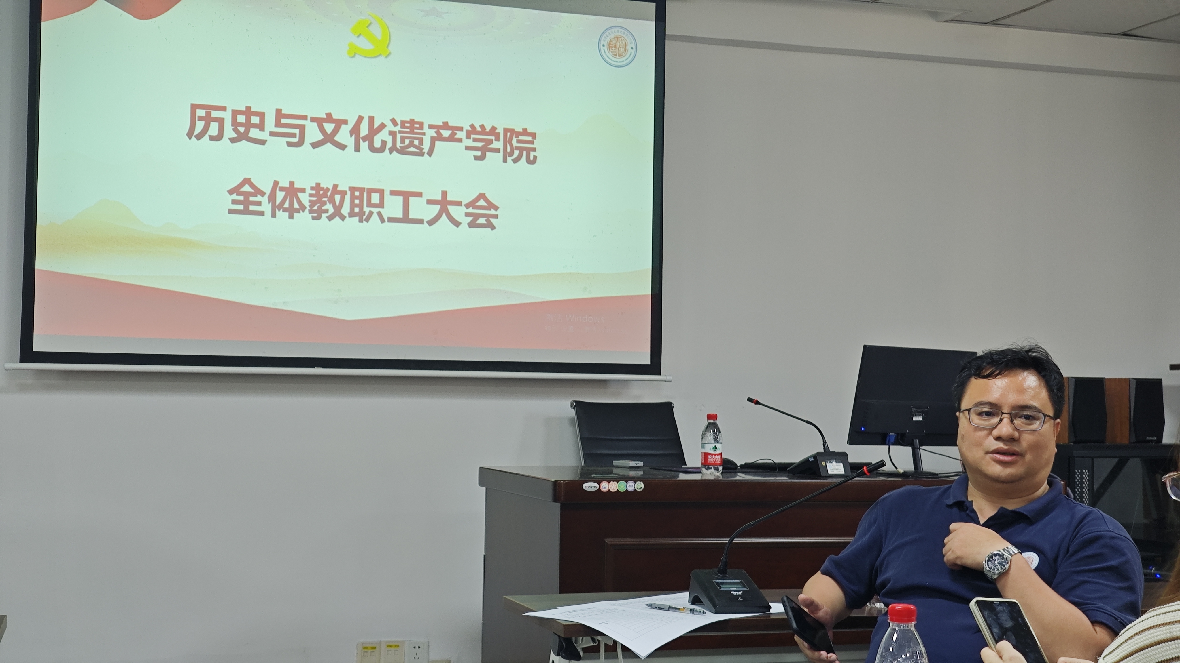 为善始善终抓好党纪学习教育,部署假期工作,7月15日下午,历史与文化遗产学院在联兴楼103召开全体教职工大会暨第七期师德师风讲堂。学院党政领导班子成员、全体教职工参加会议。