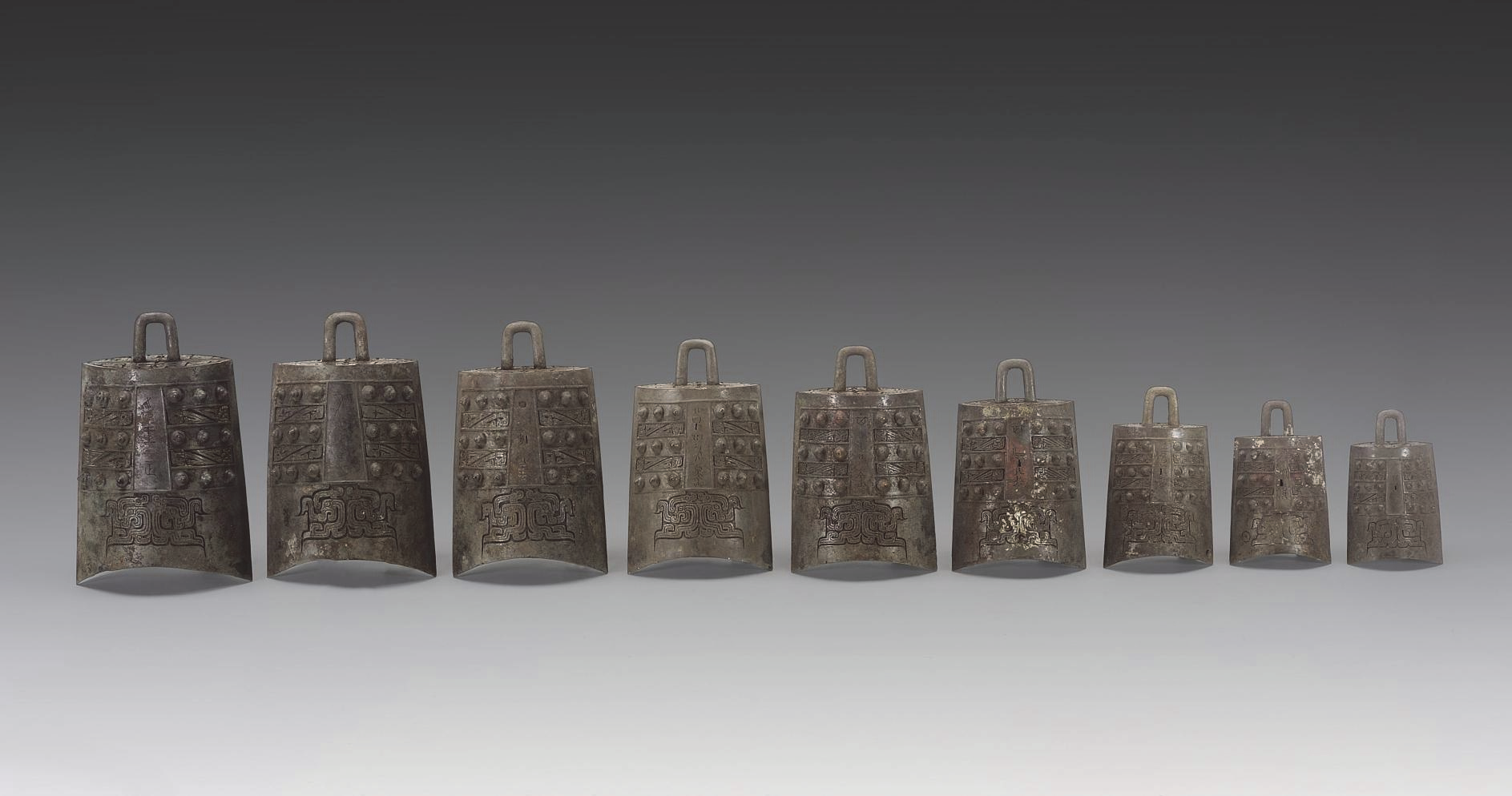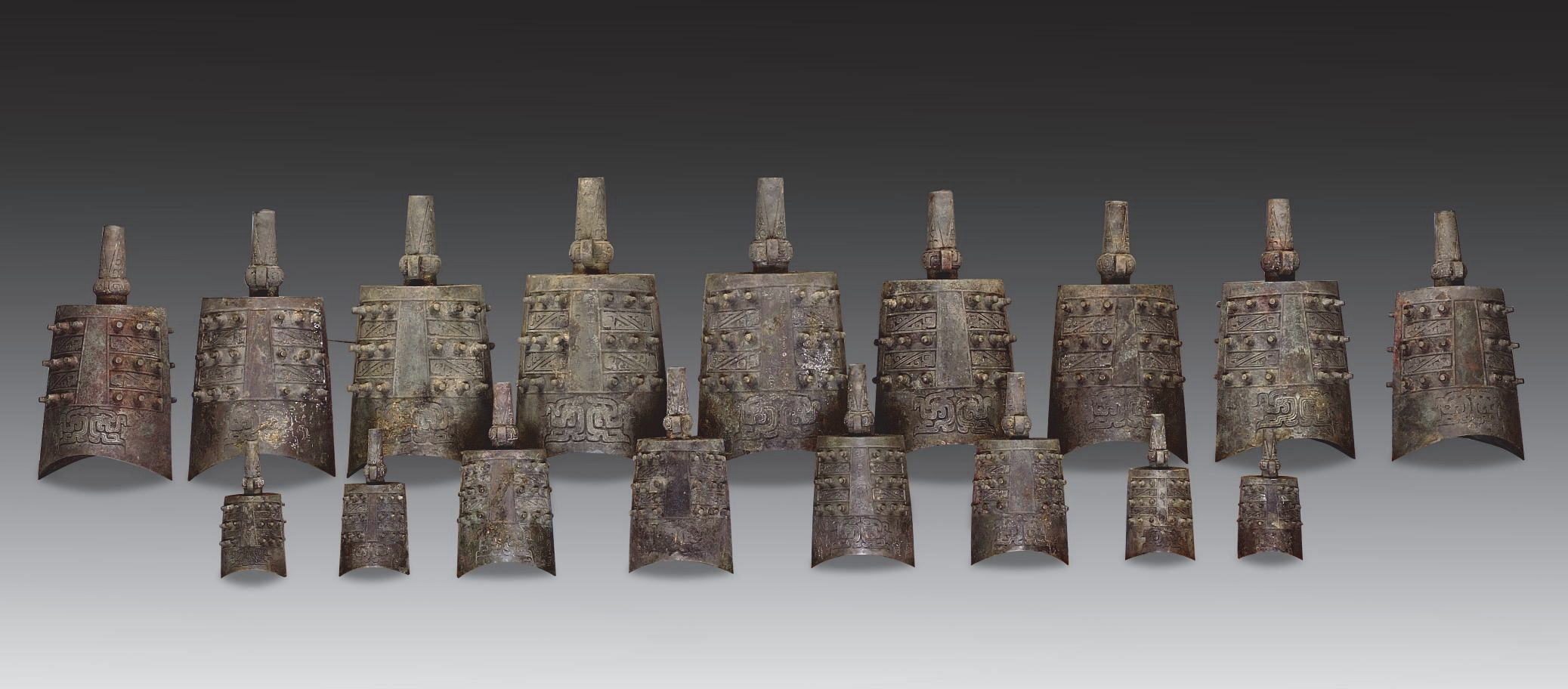 在乐钟的功能与意义方面,龢钟与行钟的功能有所不同。从铭文来看,龢钟应属于宗庙乐钟,代表墓主人的身份,因此使用了三列乐钟的葬制。这些乐钟在生前多次使用,可能会有损伤,且实际生前所备套数可能更多,因此在陪葬时需要根据身份等级补足应有的件数,导致音律与铭文不规律。行钟组则是在汉淮地区随葬礼器“行器化”思潮的影响下,专门为随葬铸造的一套青铜乐器,寓意丧葬为远行不归的“大行”之意。行钟的礼制重要性不及宗庙祭器,因此在等级上略低于龢钟。行钟可能在铸造后未经过演奏就直接陪葬,因此音律、铭文与组合较为规整。