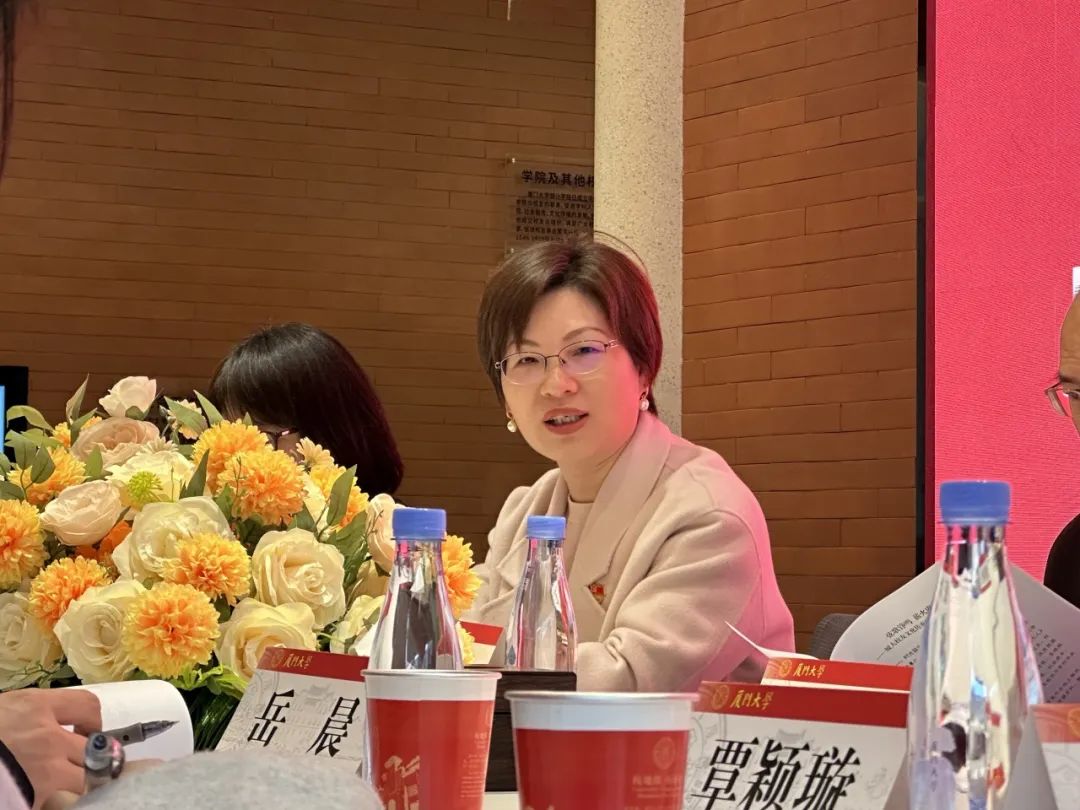 校友总会秘书处党支部书记王智兰讲述共建项目的活动背景、主要内容和工作意义。她表示,本次校友文化传承弘扬项目以三个单位的党支部合作共建形式展开推进,项目内容涵盖校友工作史料整理、校友和校友会回馈母校故事采写、“校友零距离”沙龙举办及校友馆文化空间优化等多个方面,旨在通过多元形式传承厦门大学优秀校友文化传统,凝聚师生校友爱校荣校的奋进力量。