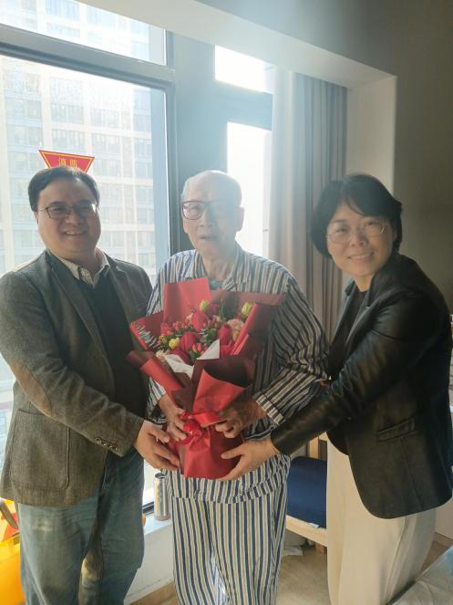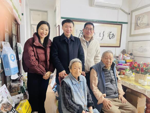 学院院长张侃、办公室主任朱艺楚,走访慰问傅宗文老师和曾玲老师。