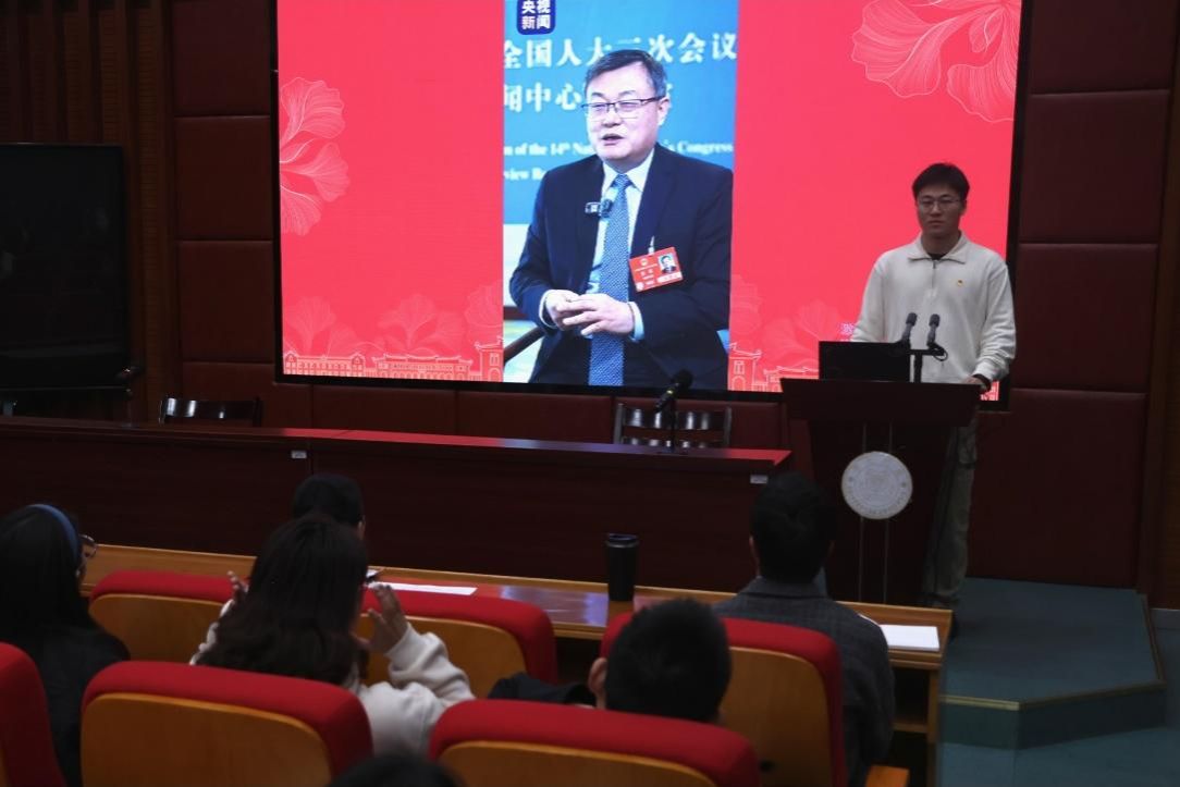 首先,主持人岳晨带领与会师生观看了全国人大代表、中国科学院院士、厦门大学党委书记张荣在全国“两会”上的采访。张荣书记指出,当今教育需要锻炼学生的批判性思维能力,加强学生的跨领域协同能力,为高校教学创新与学生个人发展提供强劲动力。