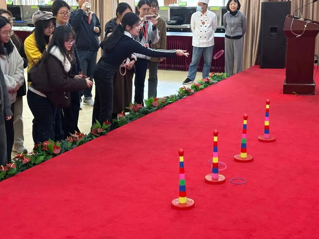 晨光微熹,东苑餐厅早已热闹非凡。签到处,饮食服务中心特别制作的饮食文化短片拉开序幕,镜头流转间,闽南非遗美食的千年韵味徐徐铺展。而一旁的套圈游戏区,更是笑声连连——精巧的校庆文创礼品随圈环轻跃,化作师生们手中第一份"校庆彩头"。