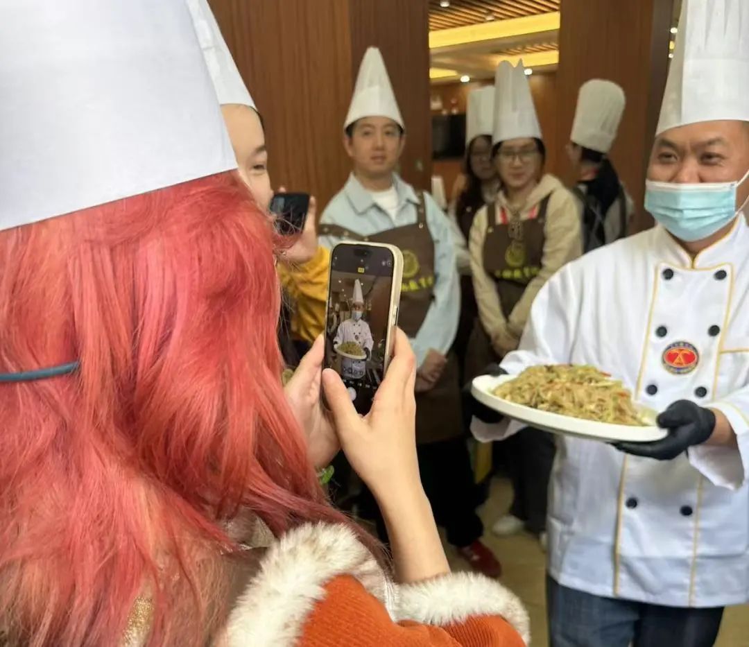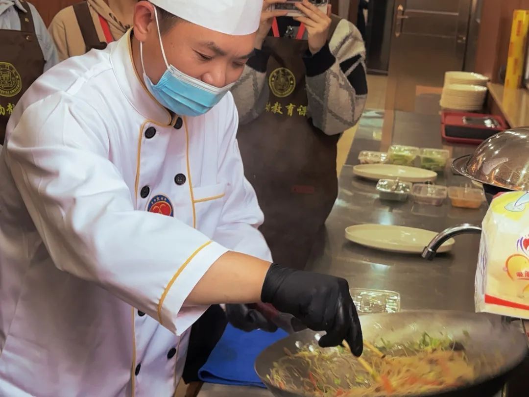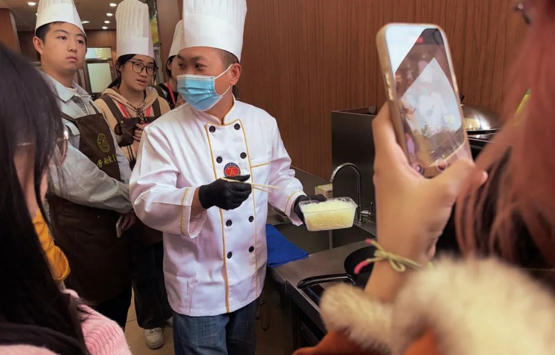 "食材如历史,火候即匠心。"在专业厨师的指导下,手撕包菜清脆的声响、米粉与铁锅碰撞的香气、春卷皮包裹乡愁的巧劲,化作一堂流动的非遗技艺课。