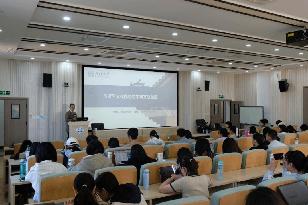 2024年11月30日,习近平文化思想学生研习班开班式暨第一堂理论教学课在南光二号楼四楼报告厅成功举办。本次理论教学课由历史与文化遗产学院党委副书记张晗主持,厦门大学新闻传播学院副院长谢清果教授主讲。研习班指导老师、来自10个学院的81名同学组成的第一期学员参加学习。
