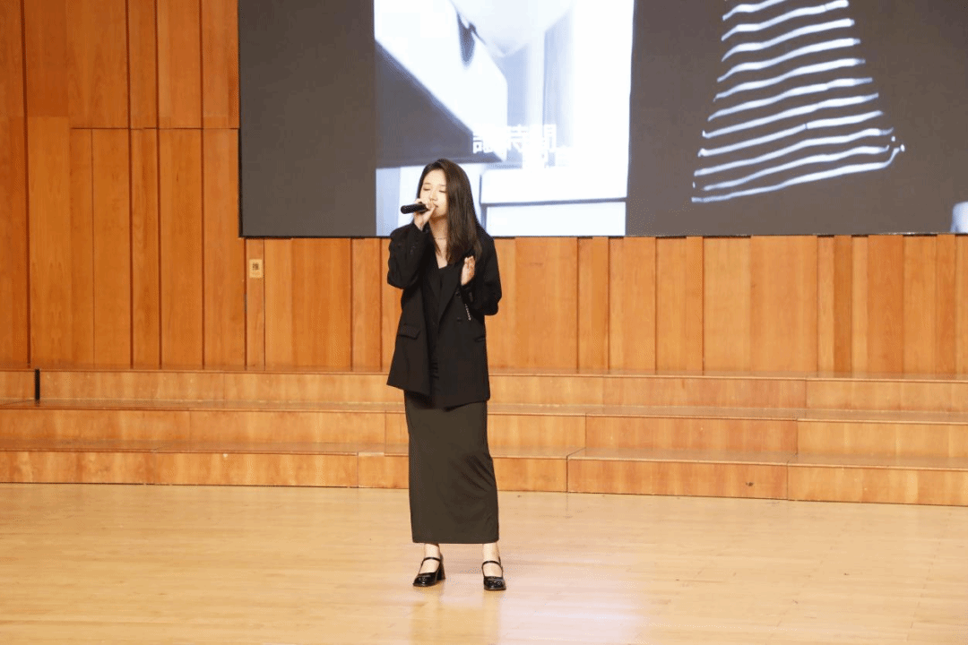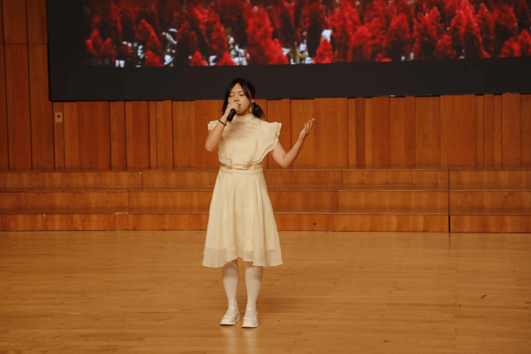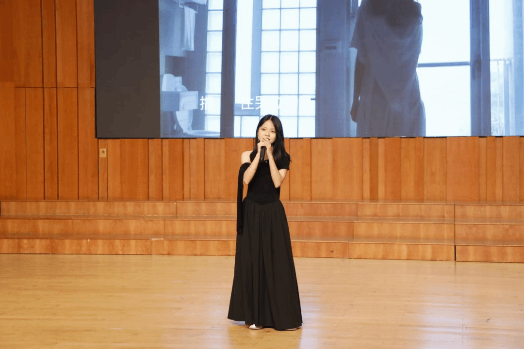 江佳嫔同学的《记得》则回归细腻真情,她用清亮动人的嗓音唤起青春里那些不愿忘却的片段,让人沉浸在回忆的漩涡中。林舒艺同学则选择了《下一个天亮》,她的声音轻柔坚定,在层层堆叠的旋律中逐渐推向高潮,仿佛为我们打开一扇通往明天的窗。压轴出场的李梦婕同学演唱的是《缘起》,她将“缘分”这份飘渺的情感演绎得深情绵长,空灵的声音像一段古老传说,在心头久久回荡。