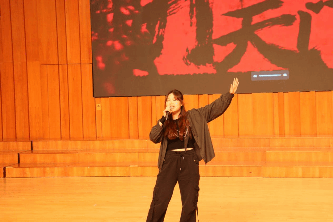 紧接着登场的刘诗莹同学以《慕容雪》展现了她清澈纯净的嗓音,将歌曲中那股凛冽与浪漫交织的意境演绎得如同置身雪海,空灵而美丽。林宸羽同学带来的《乌兰巴托的夜》充满异域风情,她的歌声低回婉转,仿佛蒙古草原上的风,带来辽阔与孤独的诗意之美。高超的演唱技艺为她赢得了热烈掌声。