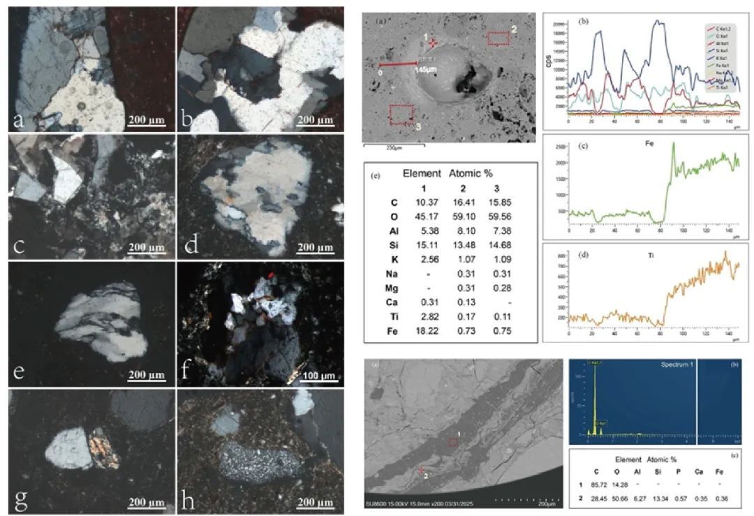 图2龟山遗址出土陶器岩相显微形貌及SEM-EDS分析