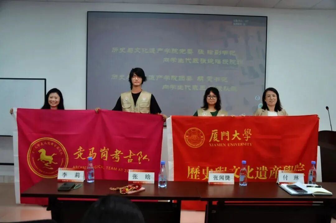 随着师生代表分享的结束,走马岗遗址考古实习启动仪式在厦大校歌声中正式落下帷幕。整场仪式围绕授旗授铲和队服设计证书颁发为核心,既庄重又活泼,满是师生间专业的指引与真挚的期许,不仅让全体实习成员明确了田野探索的方向与使命,更凝聚起共同奔赴发掘现场的强大意志。