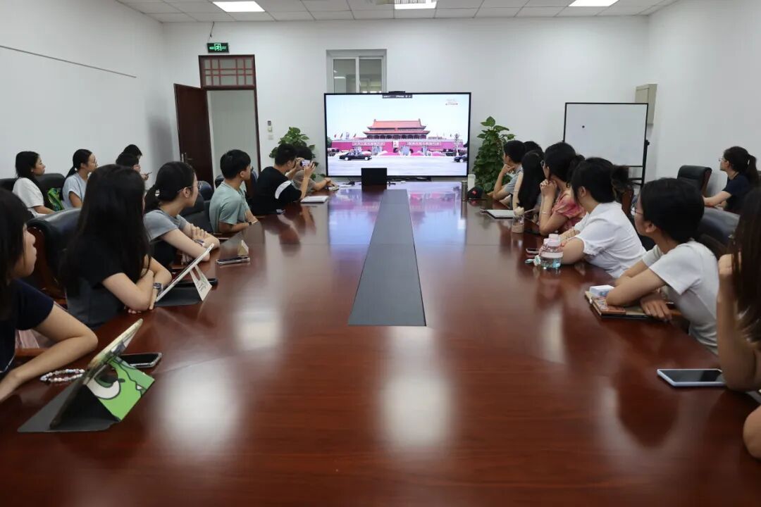 2025年9月3日上午,纪念中国人民抗日战争暨世界反法西斯战争胜利80周年大会在北京天安门广场隆重举行。历史与文化遗产学院党委书记陈锦华、院长张侃、副书记张晗、副院长李莉、副院长张闻捷等党政领导班子成员,各师生党支部党员、2025级本硕博新生怀着激动和崇敬的心情,在南光一320、317、202会议室等会场集中收看直播,共同见证这一盛况。师生们认真聆听习近平总书记的重要讲话,用心记录阅兵式的震撼画面。观看结束后,师生们心潮澎湃、倍感振奋,纷纷发表观看感想。