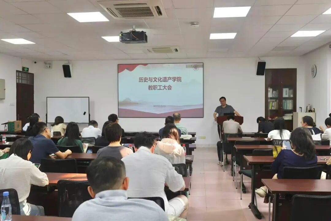 9月5日下午,历史与文化遗产学院在南光一202召开新学期教职工大会暨师德师风讲堂。学院领导班子成员及全体教职工参会。会议由院长张侃主持。