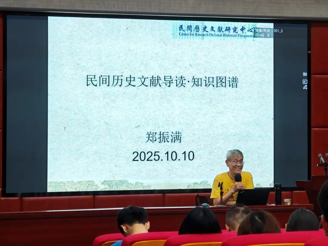 10月10日上午,  厦门大学历史与文化遗产学院、民间文献研究中心主任郑振满教授   为我院2025级本科新生作了题为《民间历史文献导读·知识图谱》的授课。该课程系厦门大学历史与文化遗产学院“  2025级新生研讨课   ”暨“  强基拔尖人才培养系列讲座   ”之一,由  李莉教授   主持。在本次新生研讨课中,郑教授分别从“文献导读”与“基本知识”两个方向介绍民间历史文献课程的知识图谱,让同学们了解民间历史文献的形式、内容与史料价值,也让同学们感受中华民族传承千年的文化传统。