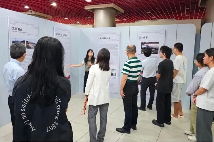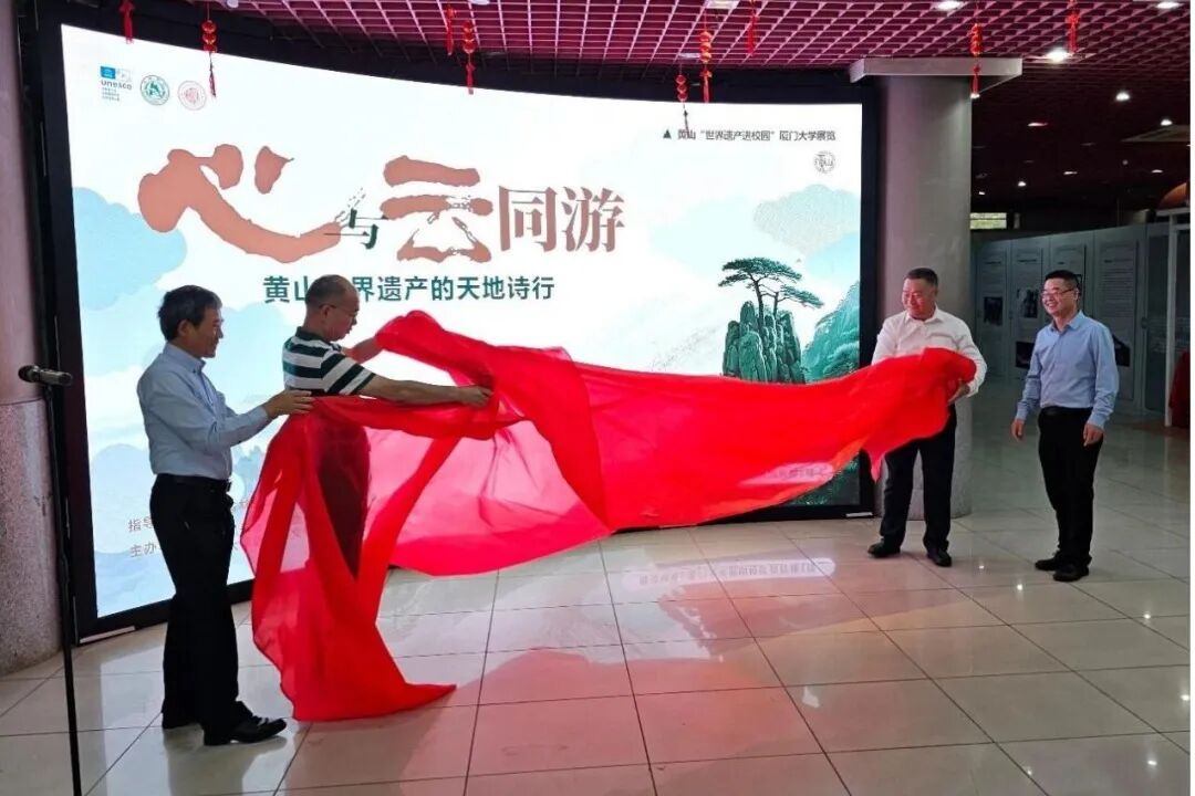 陈锦华书记、杨新虎副主任、王日根教授、郑修发处长 共同为“黄山世界遗产进校园”主题展览揭幕。黄山世界遗产管理办公室主任方媛带领在场领导、嘉宾及师生参观展区,生动讲解黄山的自然风貌与文化内涵,让大家直观感受世界遗产的独特魅力。
