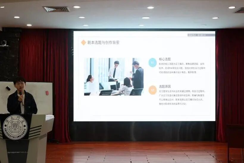 下午14时,厦门大学第四届沉浸式互动剧本创作大赛职业生涯赛道复赛接续举行。参赛队伍聚焦职场成长与生涯规划,带来多样职业人生。《十字路口·昨日之海》探讨大学生在高压下的自我接纳;《巅峰营的救赎》直面职场初心与利益纠葛;《清醒计划》描绘未来职场中的清醒抉择;《深蓝之烬》围绕科研诚信与资本博弈展开。《消失的“它”——职业十字路》《动如参商》《闻香识途》《破茧实习生》《衡镜律所:星瀚泄密案》《天海》《第七个返乡人》《黑马计划》《令人心痛的offer》《职场蜃楼》《理想主义者之环:职场突围》《职场风云:黎明后的星图》《从笔墨到国风帝国》等作品轮番登场,直面内卷、底线、梦想与现实,展现出新青年们对职业世界的深刻思考。