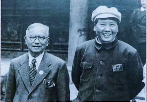 图2 1949年6月,陈嘉庚与毛泽东主席在北京中南海勤政殿前合影