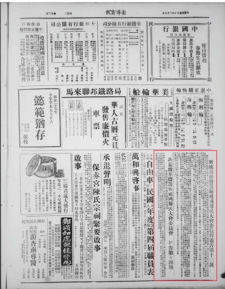 图10 1937年7月,陈嘉庚领导的星华筹赈会募捐公告