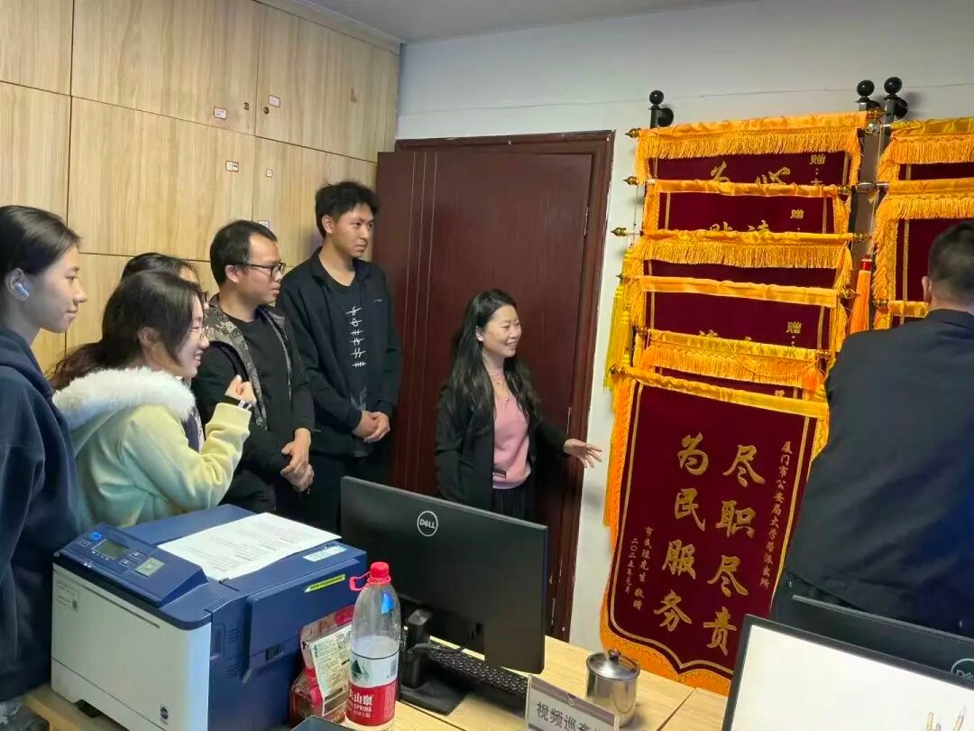 参观环节,同学们实地观看了校园监控大屏、锦旗墙等。交流环节中,学生代表踊跃发言,围绕“诈骗资金为何难以追回”“安全宣传如何兼顾警示性与社交需求”“研究生群体安全宣传形式创新“等问题与民警深入探讨。