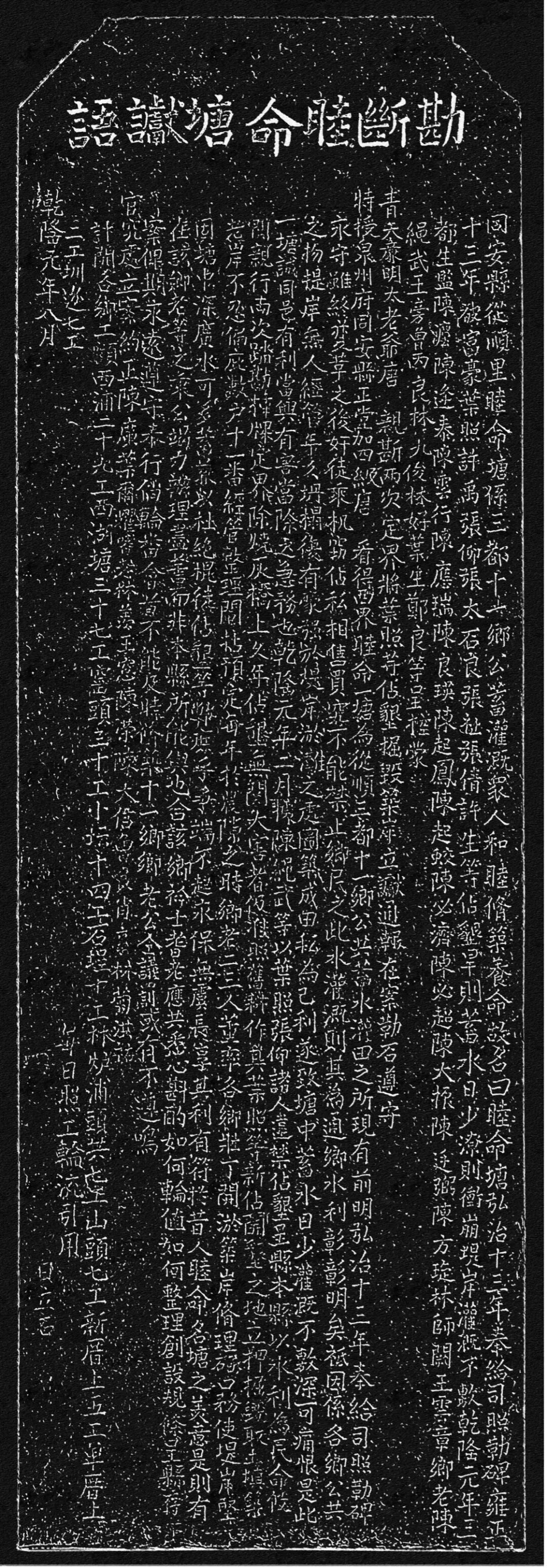 图7 “勘断睦命塘谳语碑”实物图(左)