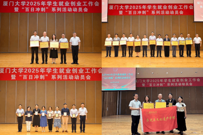 2025年5月19日,在厦门大学2025年学生就业创业工作会暨“百日冲刺”系列活动动员会上,获评“本科生深造工作示范单位”“毕业生就业创业工作先进单位”、第一批厦门大学“就业引航名师计划”优秀组织奖。李莉教授获评“本科深造先进个人奖”,并作为第一批厦门大学“就业引航名师”代表,在会上作“守正创新,以高质量人才培养为升学引航”的主题汇报。