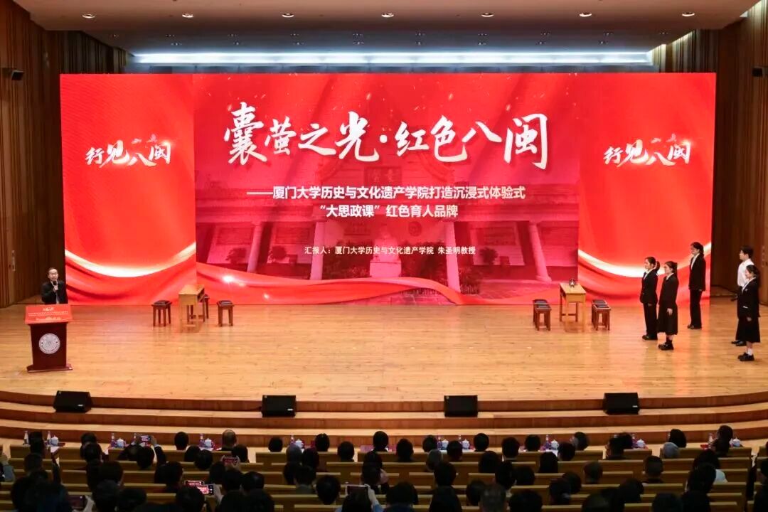 2025年3月29日,在“行见八闽”大思政课研学实践圈建设2025年工作推进会(南部片区)暨全省高校学生“追寻领袖足迹体悟优秀传统文化”寒假社会实践总结展示活动上,我院的师生思政微课《囊萤之光红色八闽》精彩展演。