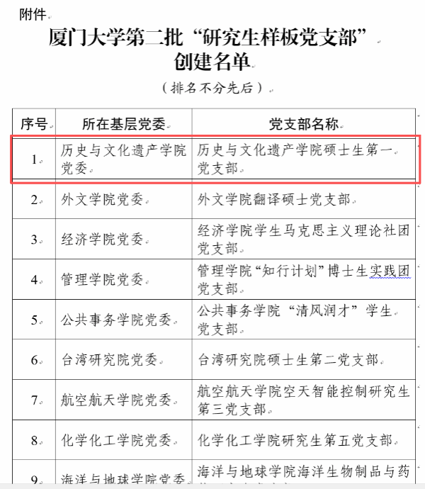 2025年7月,硕士生第一党支部入选厦门大学第二批“研究生样板党支部”创建名单。