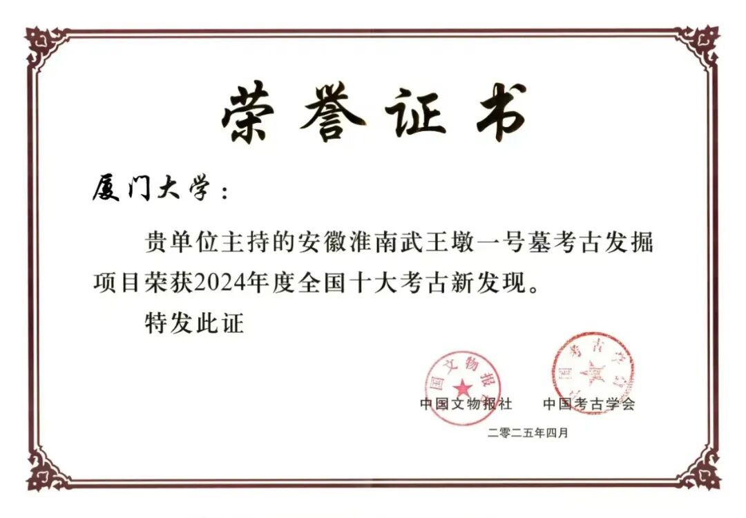 2025年4月24日,参与发掘的“安徽淮南武王墩一号墓”项目入选“2024年度全国十大考古新发现”。