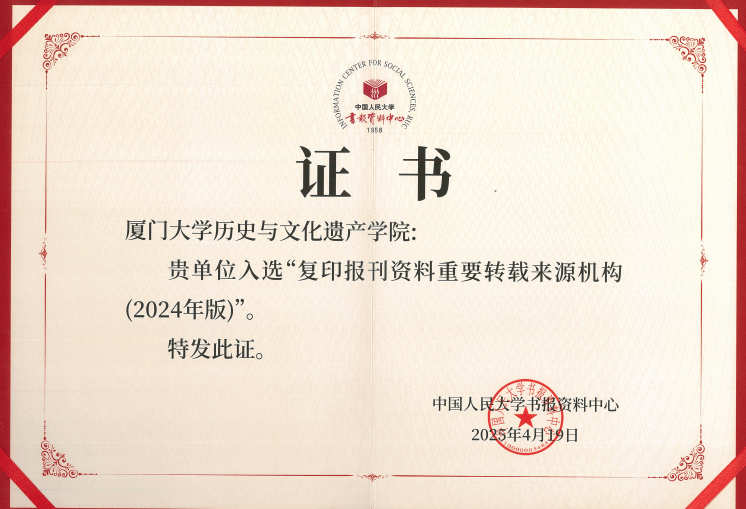 2025年4月19日,入选中国人民大学书报资料中心发布的“复印报刊资料重要转载来源机构(2024年版)”名单。