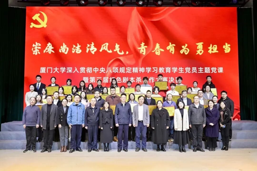 2025年3月30日,“崇廉尚洁清风气 青春有为勇担当”红色剧本杀创作大赛决赛举办。大赛历时3个月,6所高校、80余支队伍、整理、创作出60余部原创剧本。“红色剧本杀”成为厦门大学党建思政品牌,有效发挥了育人功能,推动新时代廉洁文化建设,助推清廉校园建设走深走实。