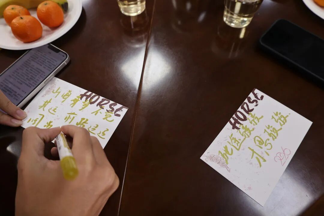 会场暖意融融,学院师生互致安康,洋溢着辞旧迎新的喜庆氛围。师生们挥毫泼墨、寄情笔端,书写下一幅幅寓意吉祥的春联与福字;裁纸剪花,剪出一张张鲜活年味窗花;执矢投壶、畅叙闲情,玩转一场场传统民俗小游戏,欢笑与年味交织相融。学院还为寒假留校学子送上新春慰问,悉心准备了马年明信片和暖心新春大礼包等。