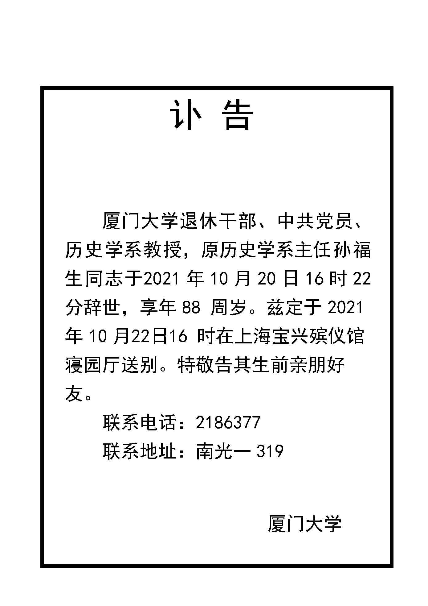 孙福生教授生于1933年4月26日,江苏丹阳人,中共党员。1950年9月至1952年9月在清华大学政治系学习,1952年9月至1955年8月在中国人民大学外交系学习,1955年9月进入北京外交学院攻读研究生,1956年9月毕业。1956年9月至1961年12月在北京外交学院任教。1962年1月进入厦门大学历史系工作,历任助教、讲师、副教授、教授。1982年2月至1983年3月教育部公派至美国康奈尔大学东南亚研究中心进行访学研究。1986年3月至1994年3月任历史系系主任。1987年加入中国共产党。1994年光荣退休。享受国务院政府特殊津贴。传记先后被列入英国剑桥传记中心出版的《远东及大洋洲名人录》《20世纪成就奖名人录》和美国马基斯《世界名人录》。
