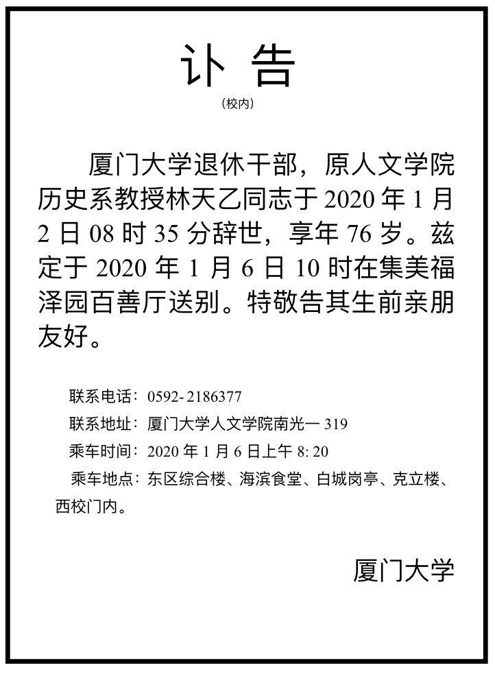 林天乙教授从事教育工作近四十年,始终忠诚党的教育工作,任教期间,兢兢业业,以扎实的教学能力和教育水平,为社会培养输送了一批批优秀的高校人才。1999年林天乙教授承担的《中国现代史》课程荣获厦门大学优秀主干课程奖,主编出版高校历史系本科生教材《新编中国现代史》。在教研之余,林天乙教授还长期承担历史系工会工作,关心教工生活,耐心细致,嘘寒问暖,为老师们排忧解难,深受全系教师员工的赞誉。