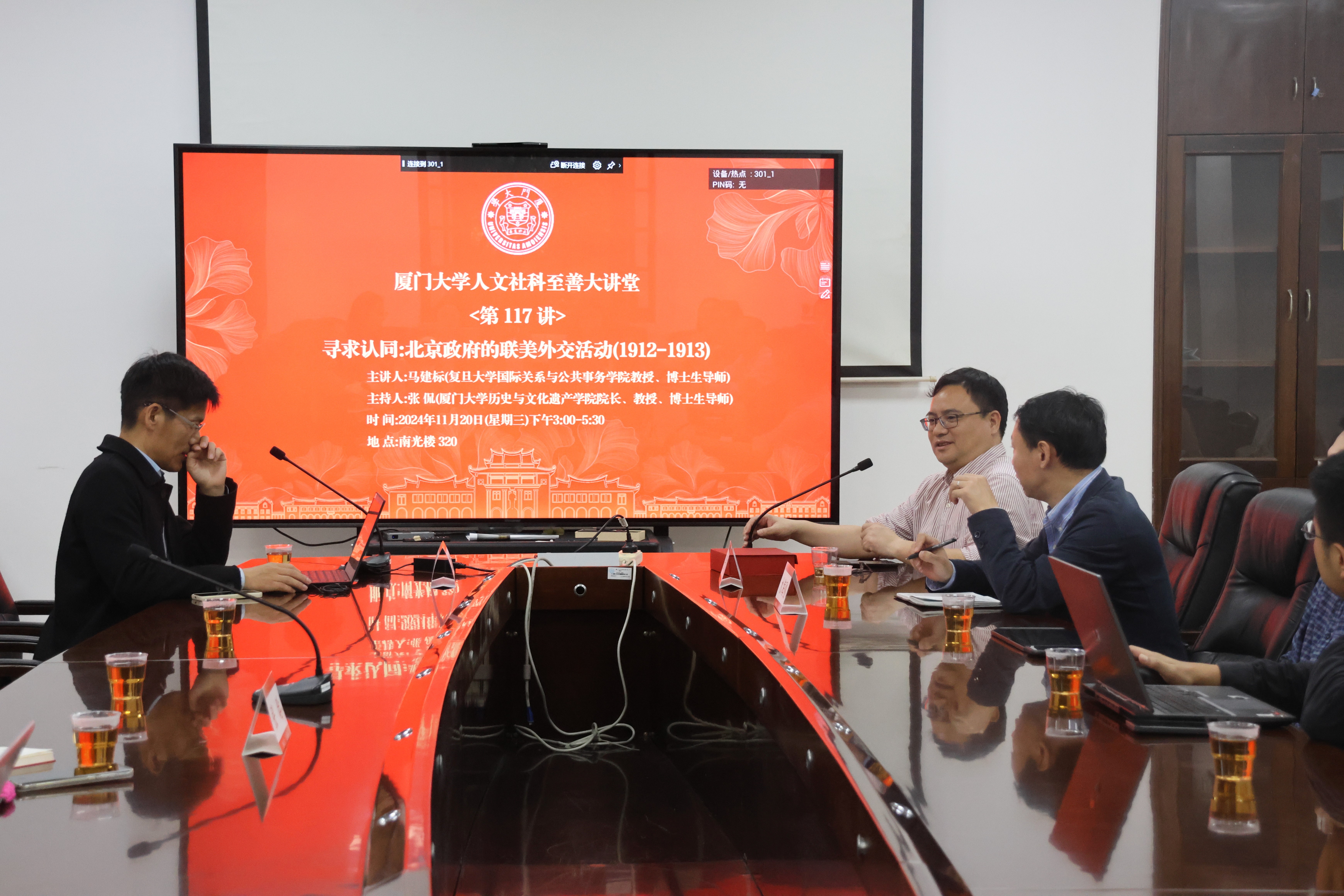 2024年11月20日下午,厦门大学人文社科至善大讲堂第117讲在南光楼320会议室开讲。本次讲座的主题是“北京政府的联美外交活动(1912-1913)”,由复旦大学国际关系与公共事务学院教授马建标主讲。讲座由历史与文化遗产学院院长张侃教授主持。