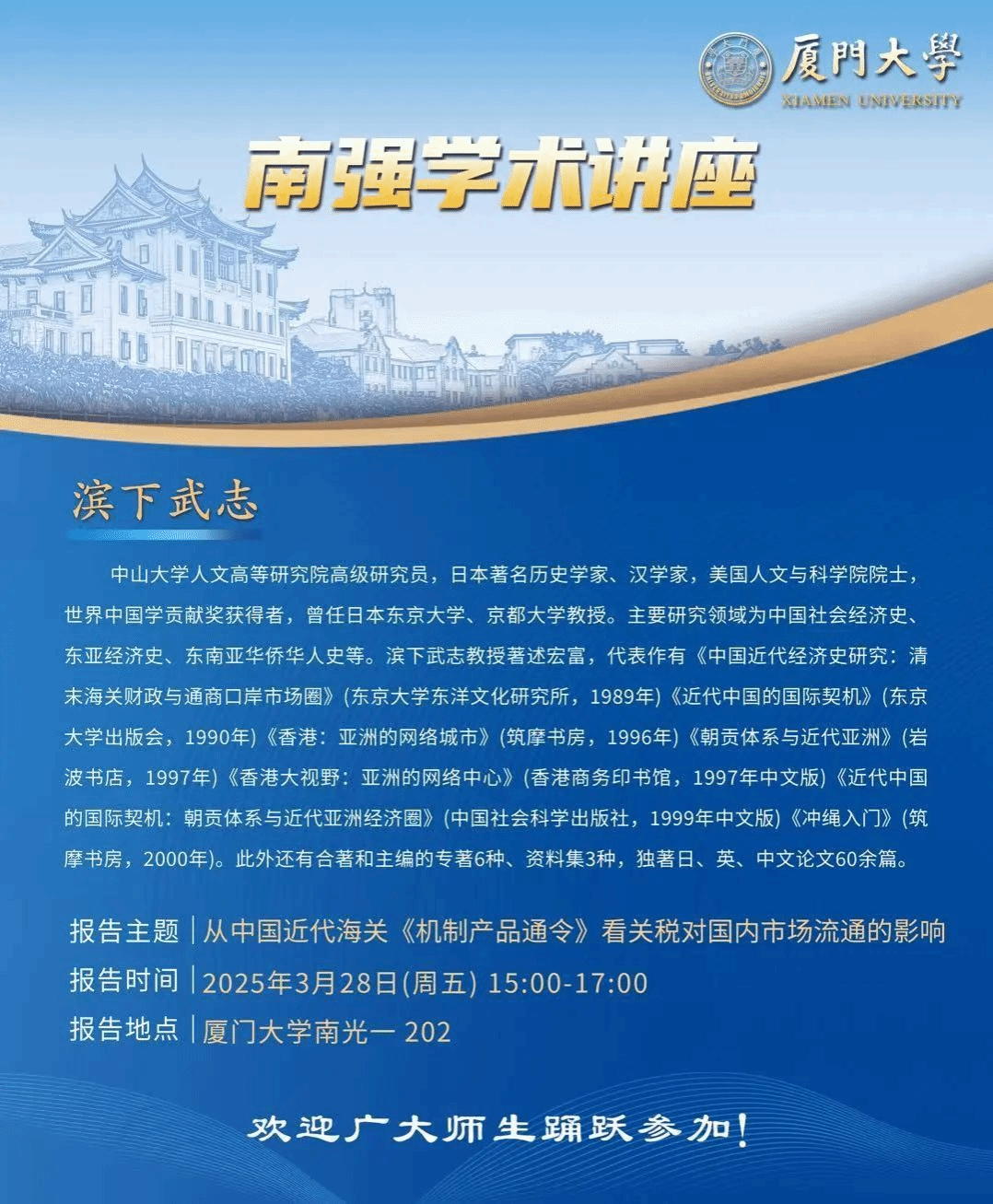 讲座预告 | 滨下武志:从中国近代海关《机制产品通令》看关税对国内市场流通的影响