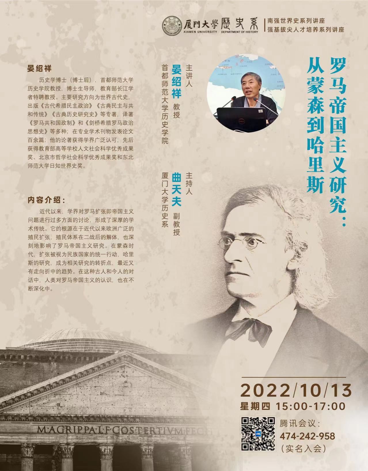 讲座题目:罗马帝国主义研究:从蒙森到哈里斯
